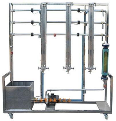 水泵、蓄水箱、沿程阻力光滑管、沿程阻力粗糙管、局部阻力管、压差计、流量计、阀门、实验台架及电控箱。